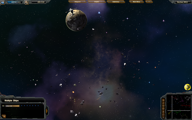 Stardrive has a reasonably large focus on its ship creator and several threads can be found on the forums where folks have customised titan class ships to unbelievable levels. To take full advantage of the opportunities available you firstly have to research technology in the direction you intend to go, for example researching energy weapons opens up trees towards a disintegrator array or quantum torpedoes! Armour, power and physics are all helpful technologies and ship hull research gives the basic building blocks for your fleet. I found that at the start of the game the fighters were adequate for defense and basic escort runs and that as ship progression evolved it was fine to use the in-game ships, of which there are plenty. Ship customisation is most important when battling as it allows you to have ships that have firing arcs that take most advantage of every situation and the ability to turn minimising hull damage. All ships can be user controlled using the W,A,S,D keys, an interesting option that I found was a bit pointless outside battling large enemy ships, as click to move options were quicker and could be used whilst paused. The seamless zoom is where the controls excel. Zooming out gives a large empire view while zooming in to observe individual skirmishes is as simple as scrolling the mousewheel. Of course this is accompanied by the sounds of battle and the smug feeling when you destroy enemy ships!