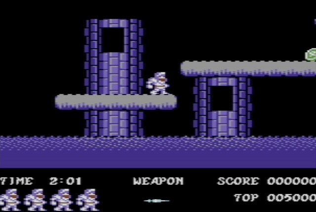 A little bit of history about the game before you get too exited! Ghosts 'n Goblins was a 1985 platformer game developed by Capcom for the arcades and has since been released over the years on several other platforms including the 8-bit such as the C64. It is the first game in the Ghosts 'n Goblins franchise where the player controls a knight, named Sir Arthur, who must defeat zombies, ogres, demons, cyclops, dragons and other monsters in order to rescue Princess Prin Prin. Regarded as one of the most difficult games ever to be released, yet oh so awesome in game play, featured multiple levels, undressing damage, new weapons, bonuses and different suits of armour.