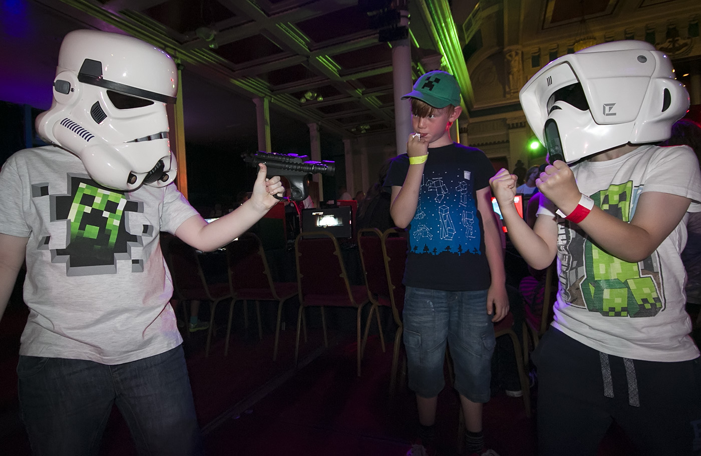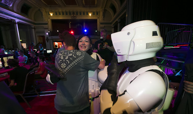 Putting that annoyance aside we headed downstairs to my favourite place, a place of wonder filled with Arcade machines, computers and all those retro games ready to be played. Thankfully our storm troopers were in full gear ready for such amazement and came along. This added an extra wow factor to the event as even the kids got involved in joining the empire!