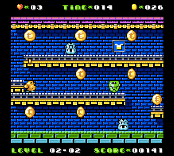 Just as in all the other versions released so far you play as Uwol on a quest for more money in a place called the Storm Palace. In each room you need to collect all the coins in the allotted time, avoid the enemies dotted about and finally choose a directional arrow which appears below to pick the next room. When you reach the very bottom of the palace, you have to have a certain amount of coins collected to win. If you haven't you start again at the top and must move towards a different direction to gather the missed coins. Sound like your sort of game? Good! Because of right now you can play it on your Commodore Amiga with 1 Mb RAM!